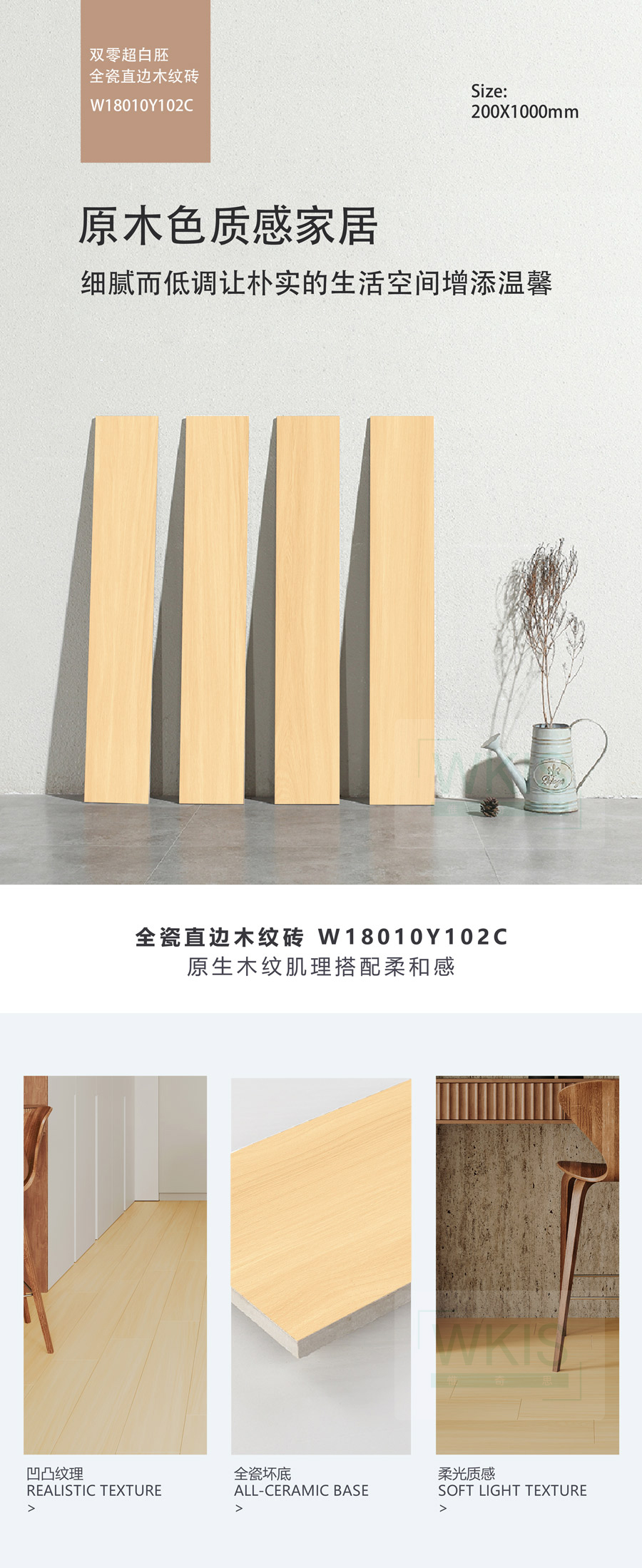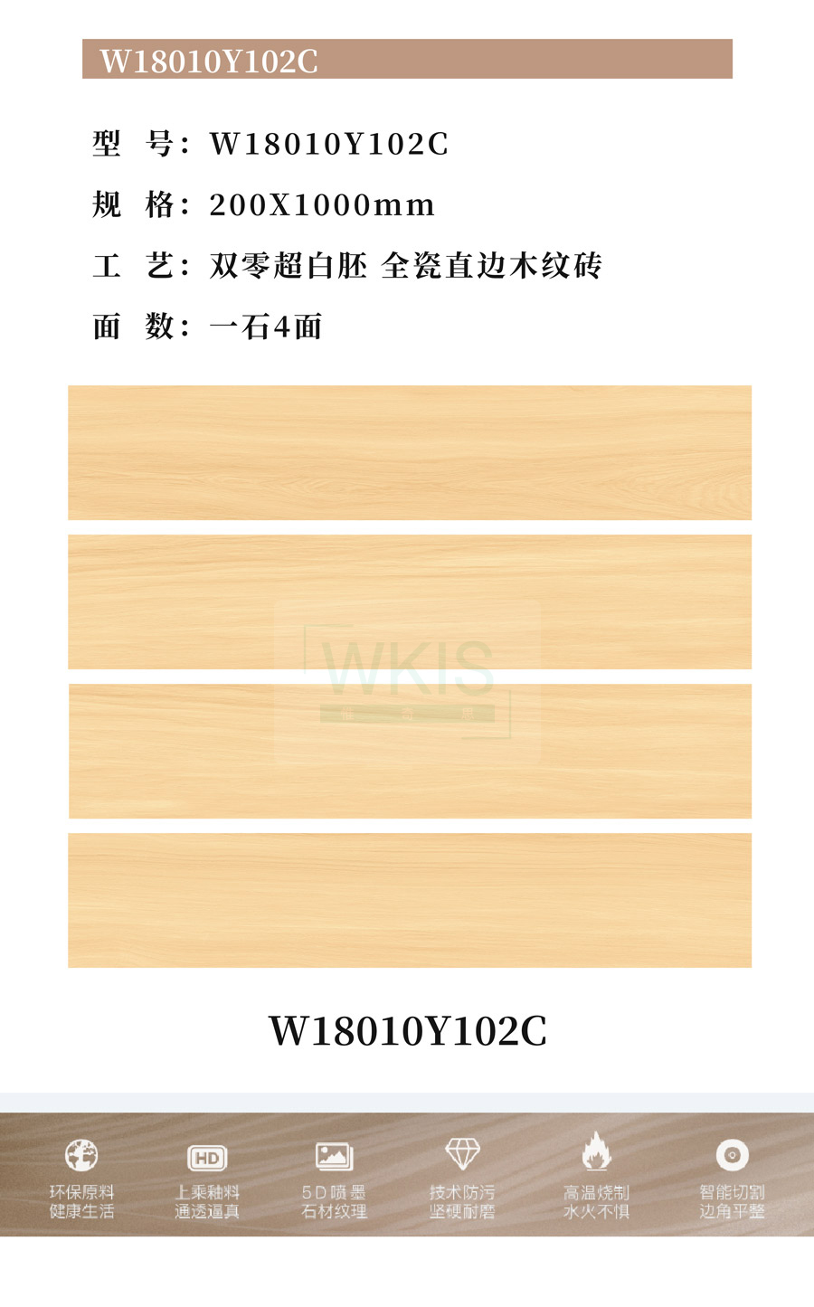 商品屬性 [工藝] 直邊木紋磚 [編號] WA18010Y102C