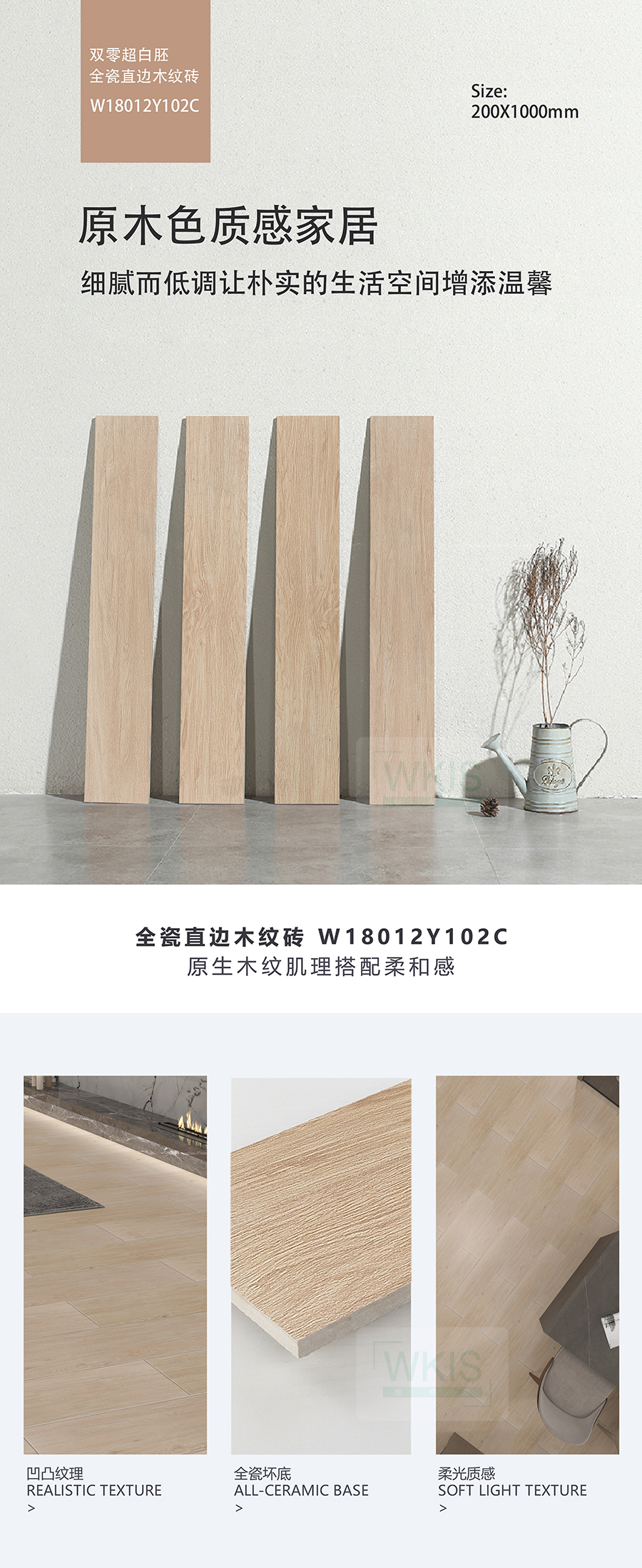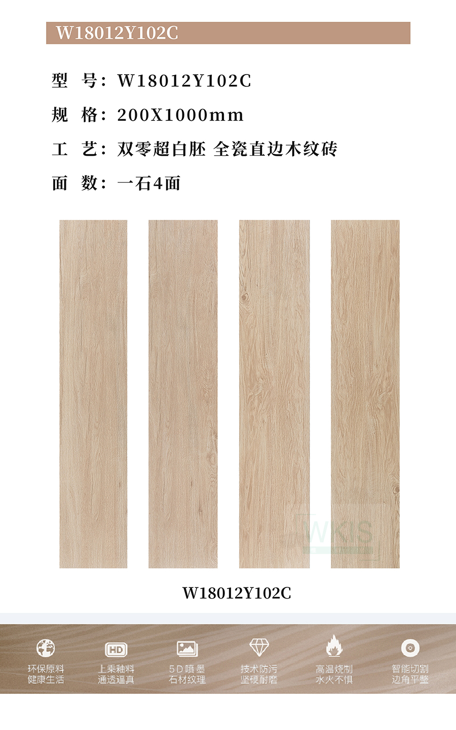 商品屬性 [工藝] 直邊木紋磚 [編號] WA18012Y102C