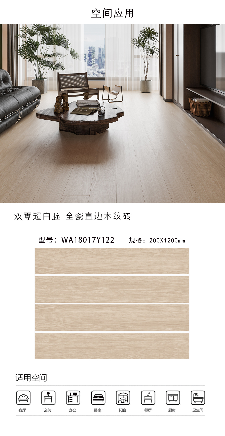 商品屬性 [工藝] 直邊木紋磚 [編號] WA18017Y122C