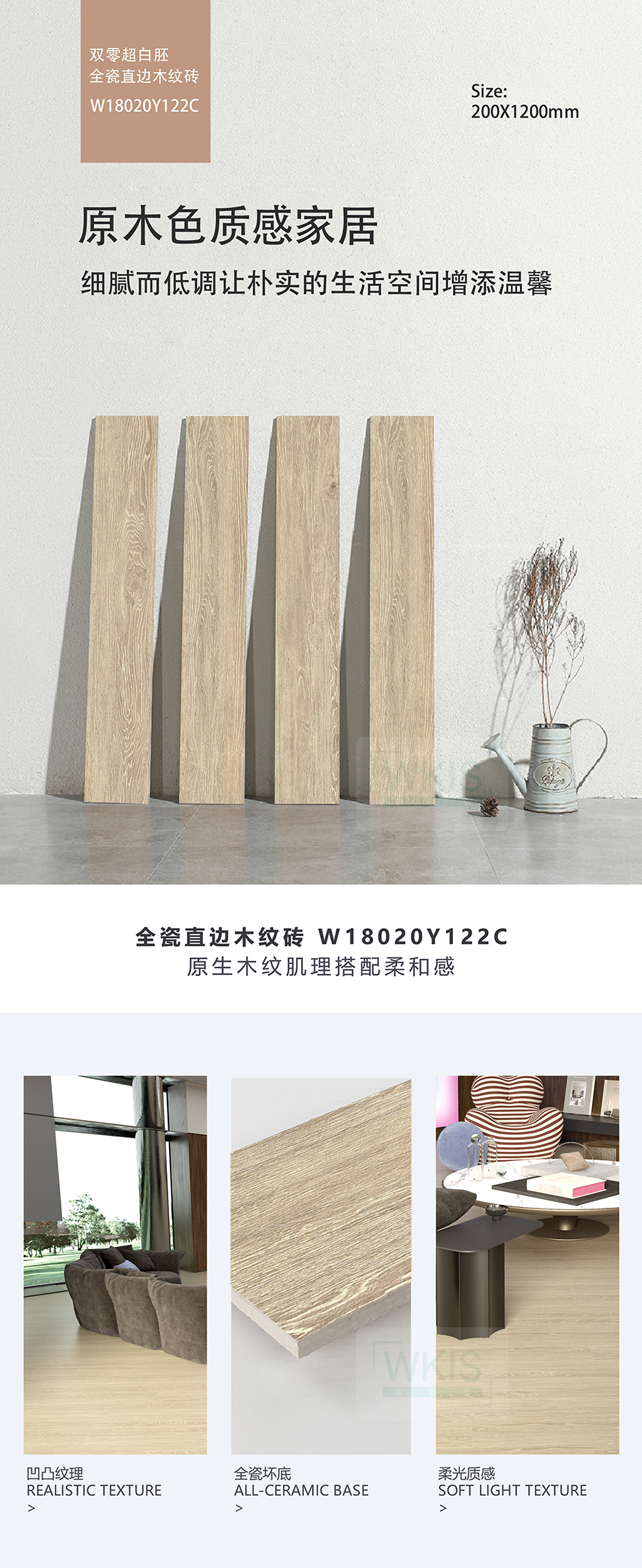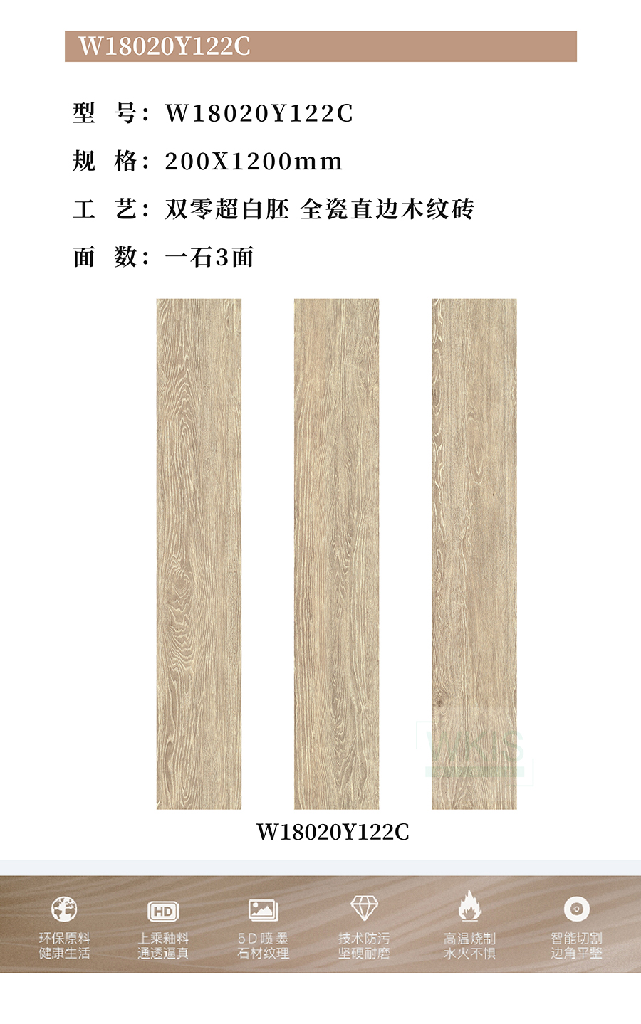 商品屬性 [工藝] 直邊木紋磚 [編號(hào)] WA18020Y122C
