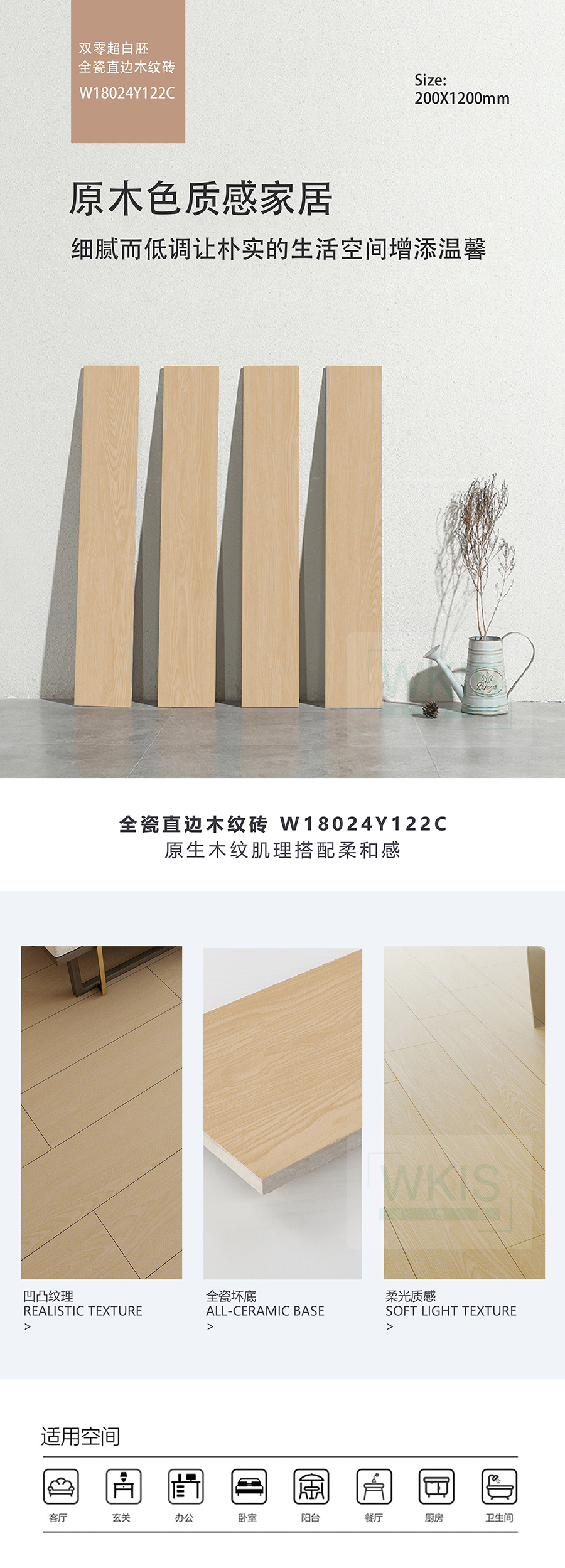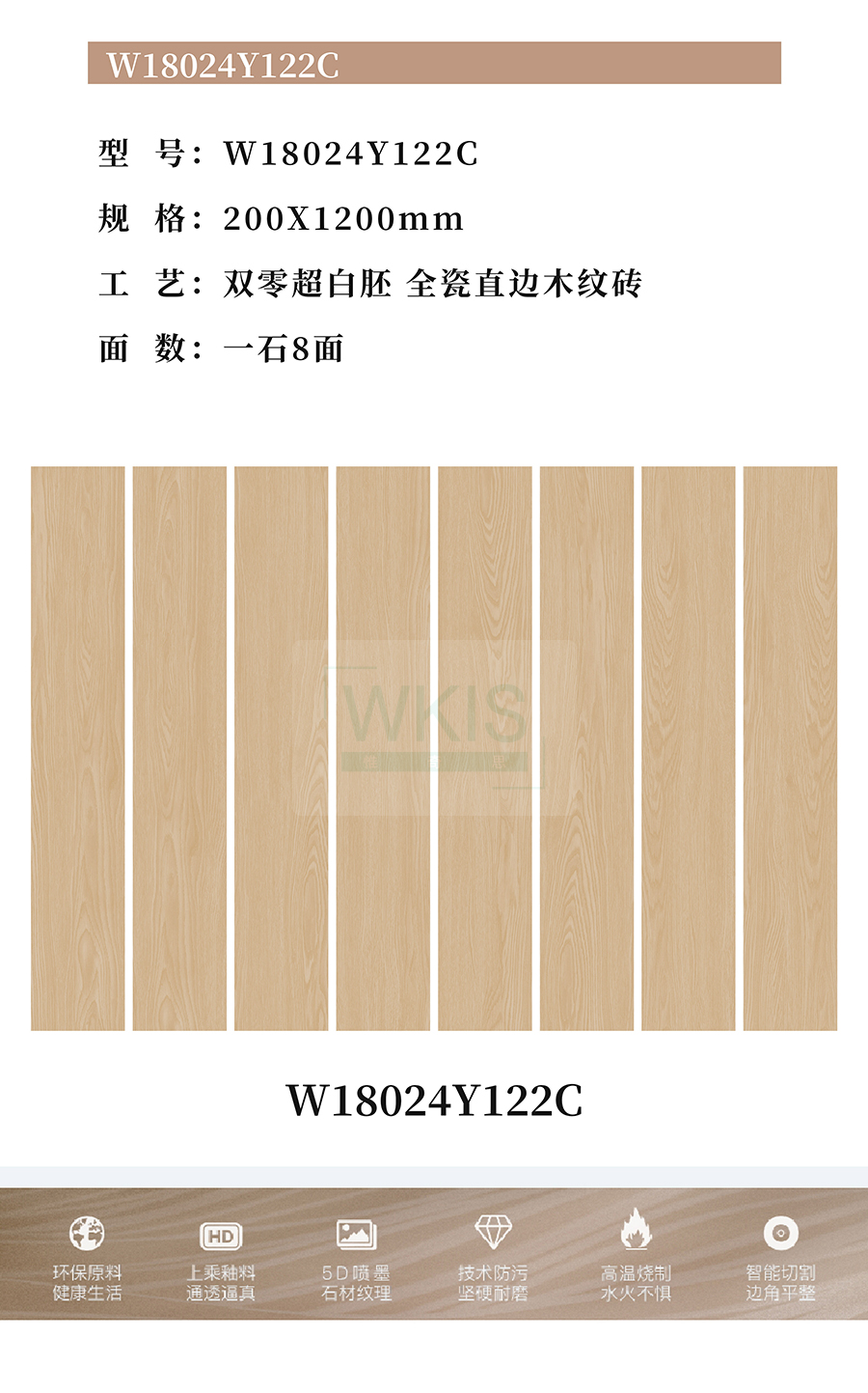 商品屬性 [工藝] 直邊木紋磚 [編號] WA18024Y122C