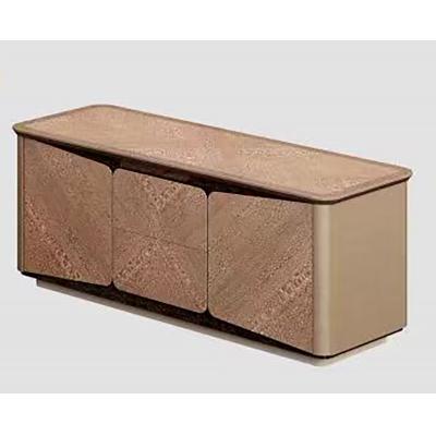 基材采用國企上思華林先進生產線E0級別高 密度纖維板,表面貼高檔尼斯+貓眼木皮,正 面異形面捫貼高檔金絲皮。臺面腰線及臺腳豎 線都配有SUS304不銹鋼實芯裝飾條,表面鍍成 高貴的玫瑰金顏色