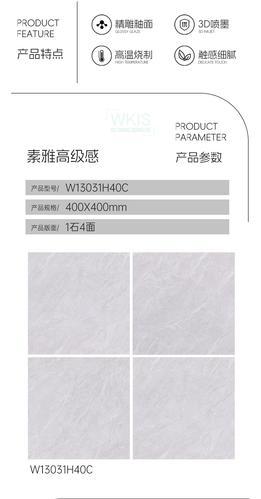 商品屬性 [工藝] 干粒半拋 [編號] WA13031H40C