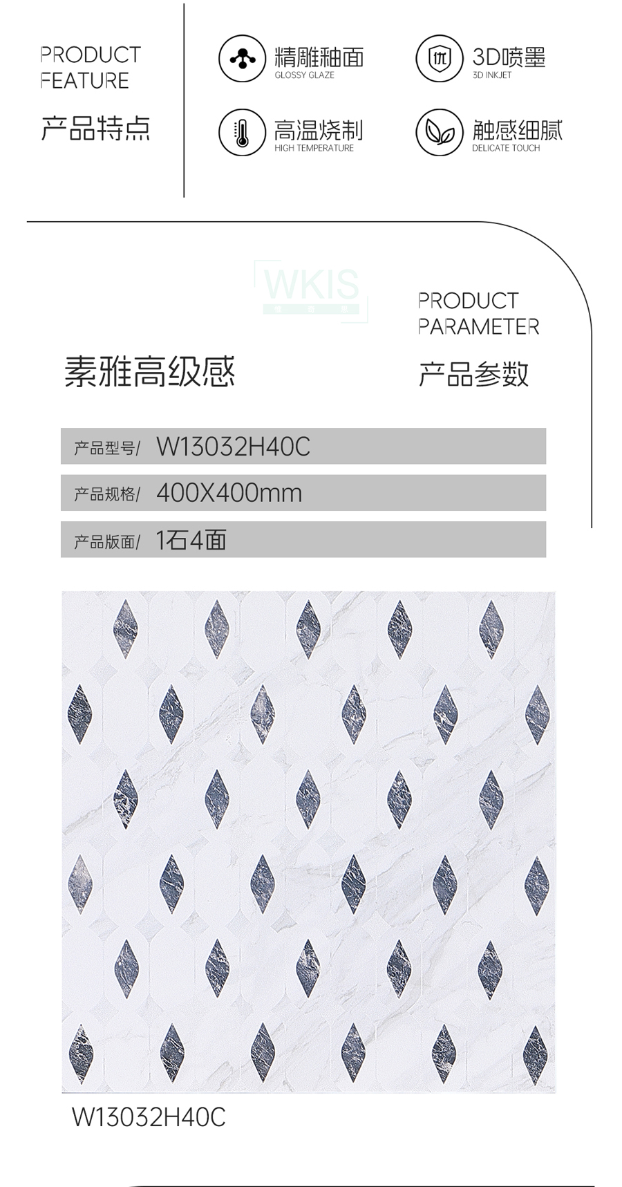 商品屬性 [工藝] 干粒半拋 [編號] WA13032H40C