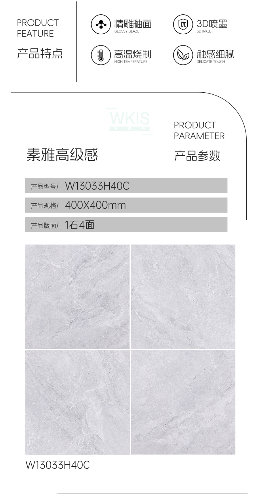 商品屬性 [工藝] 干粒半拋 [編號] WA13033H40C
